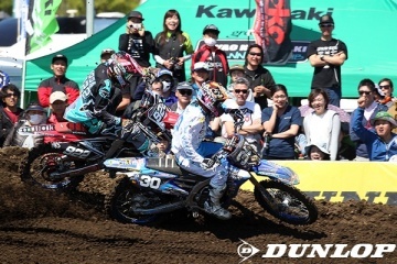 ヘビーマディ路面での開幕となった今季の全日本モトクロス選手権。しかし、それから2週間後に埼玉県のウエストポイント オフロードヴィレッジで開催されたこの第2戦は、土曜日の日中に小雨が舞い、夕方から夜にかけて強い雨が降ったが、予選と決勝はドライコンディションで実施された。荒川と入間川に挟まれた河川敷に設けられた高低差のないコースは、多数のジャンプおよびリズムセクションとタイトターンを配した、いわゆるスーパークロス的なレイアウト。最高峰クラスのIA1に参戦するライダーのうちダンロップ勢では、今季から全日本に復帰して開幕戦でまず1勝を挙げたホンダの山本鯨(#400)や、カワサキファクトリーマシンを駆る小方誠(#10)が、地元となる関東での大会に気合十分で臨んだ。