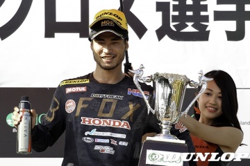 最高峰クラスとなるIA1は、前戦でホンダファクトリーチームの山本鯨選手(#400)がランキングトップに浮上。これをカワサキトップチームの小方誠選手(#10)が追う、ダンロップ勢による王者争いとなっている。今大会の決勝ヒート1では、その山本選手と小方選手が、序盤から三つ巴のバトルとなったトップグループに加わり、優勝を争った。4周目、集団の中で山本選手がトップに立ち、小方選手は3番手で様子をうかがう展開。レース中盤の8周目、山本選手が転倒して3番手に後退すると、翌周には小方選手がトップ浮上を果たした。レース後半、粘るライバルふたりに対して、小方選手も確実に順位を守って周回。レースは17周でチェッカーとなり、小方選手が今季6勝目を挙げた。山本選手は、14周目に順位を上げて2位となった。