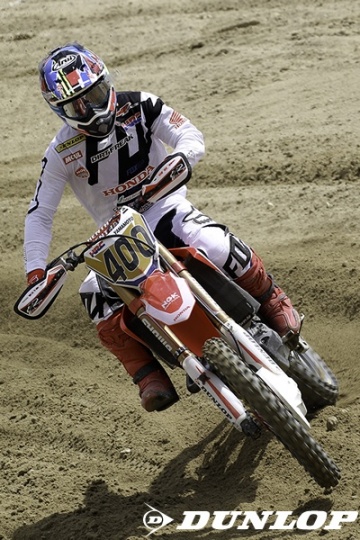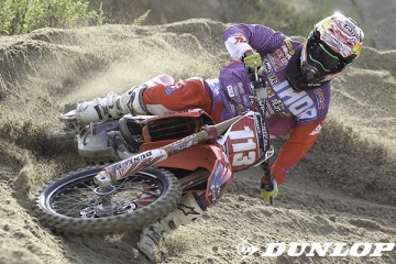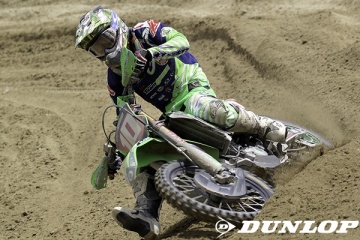 年間9戦で競われる今季の全日本モトクロス選手権シリーズは、第7戦近畿大会を迎え、昨年までと同じく奈良県の名阪スポーツランドで熱戦が繰り広げられた。サンド質の路面を特徴とするコースは、これまでの大まかなレイアウトを踏襲しながら、各セクションに改良が施された仕様。土日とも午後に天気が急変し、一時的な降雨もあったが、両日とも午前中は天候に恵まれ、路面はドライコンディションが保たれた。決勝日の最高気温は29度。午後は日差しが弱まったことから、快適な観戦環境となった。最高峰クラスとなるIA1は、ホンダファクトリーチームの山本鯨選手(#400)がポイントリーダーを守り、これをカワサキトップチームの小方誠選手(#10)が3点差で追う、ダンロップ勢によるチャンピオン争いが続いている。