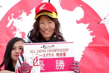 全日本最高峰クラスとなるIA1では、昨春の中国大会で両ヒート制覇を達成したカワサキトップチームの小方誠選手(#2)が、今年もこのコースとの相性のよさをみせた。予選を圧倒的な好タイムでトップ通過した小方選手は、迎えた決勝ヒート1の1周目を6番手でクリアすると、3周目には4番手に順位を上げて、ホールショットから序盤3番手の好位置を確保した田中雅己選手(#113)を追った。トップから4番手の小方選手までは、やや縦に長い集団となり、レース中盤の8周目あたりからは各車が距離を詰めて接近戦となった。この中、小方選手は9周目に田中選手を抜くと、その勢いを保って翌周に2番手、ラスト3周となった15周目にはついにトップへ浮上した。しかし最終ラップの前半でミスを喫し、小方選手は2番手に後退。最後までトップを猛追するも届かず、小方選手は2位となった。田中選手は5位でゴールした。