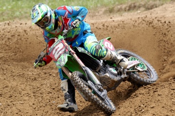 1ヵ月半近いインターバルが終わり、全日本モトクロス選手権シリーズの第6戦東北大会が岩手県の藤沢スポーツランドで開催された。宮城との県境に近い岩手県南部に位置するこのコースは、小高い丘の斜面にレイアウトされていて、林の中を縫うようなセクションも多い。かつてはサンド路面で知られたが、現在は細かく砕けた土に砂が混ざったような土質。天気は土曜日が晴れ一時曇り、決勝が開催された日曜日は曇り時々晴れで、両日とも路面はドライコンディションとなった。今年の日本を襲う異例の猛暑は東北地方も例外ではなく、土曜日の最高気温は35度。このため各クラスの決勝時間は5分短縮され、IA1とIA2は各ヒート25分+1周で競われた。決勝日は曇りがちで風もやや強めに吹いたことから、前日ほどの酷暑とはならなかったが、とはいえ選手にとっては暑さとの闘いともなった。