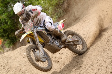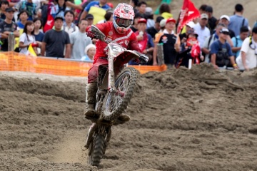 8月下旬に予定されていた第7戦中国大会が、豪雨被害の影響により中止となったことから、前戦から約1ヵ月半のインターバルを挟んで開催されることになった第8戦近畿大会。その舞台は三重との県境に近い奈良県の山中に位置する名阪スポーツランドで、こちらも直前に上陸した台風の影響が心配されたが、予定通り実施された。レースウィークの会場では台風通過後も断続的に雨が降り、土曜日も曇り時々雨となったことから、サンド質の路面は多くの水を含んだマディ状態。しかし日曜日は、曇り時々晴れに天気が回復したことで、少しずつ路面状況が改善されていった。最高峰クラスのIA1では、ダンロップタイヤを履く小方誠選手(#2)が、トップと18点差のシリーズランキング3番手で今大会に臨んだ。