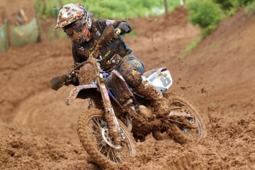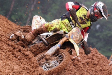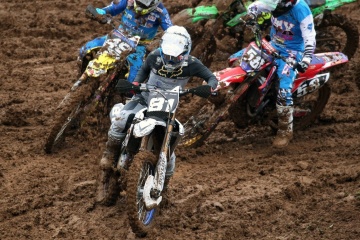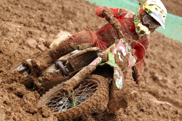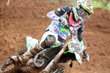 10分+1周に短縮されたレディスクラスの決勝では、ランキングトップで今大会を迎えた本田七海選手(#6)が好スタート。これに続いた勝股七海選手(#7)は転倒で大きく遅れ、本田選手は1周目だけで約10秒のリードを築いた。1周目2番手の竹内優菜選手(#4)は、大会前に右手甲を骨折した厳しいコンディション。2周目の最終コーナーで、ライバルと順位を争っていた際に接触転倒し、13番手まで順位を下げた。これにより、本田選手のリードは約17秒に拡大した。