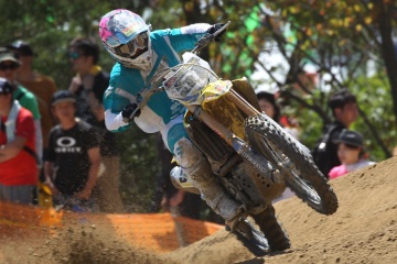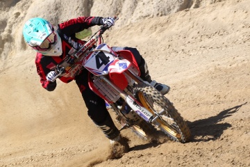 ホールショットを奪ったのは、ポイントリーダーの本田七海選手(#6)。そのままオープニングラップをトップでクリアした。ランキング2番手で今大会を迎えた竹内優菜選手(#4)は、清水夕稀選手(#19)をパスして1周目3番手。2周目以降、本田選手と竹内選手を含む3台が、後続を引き離してトップグループを形成した。レース前半、竹内選手は2番手の選手に迫るも抜けず、本田選手も後続の2台を引き離せず、三つ巴の争いが継続された。