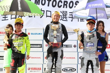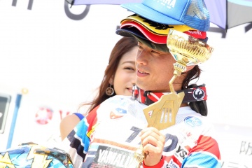レースが後半に入ると、本田選手のペースがやや落ち、6周目と7周目に逆転を許した本田選手は、3番手に後退。その後、前の2台にやや離されてしまった。一方、これで2番手に浮上した竹内選手は、トップの選手に肉迫。簡単に抜けないと判断した竹内選手は、背後でプレッシャーをかけ続ける作戦を選択した。すると最終ラップの10周目、相手選手がコーナーイン側を開けるミス。これで逆転した竹内選手が今季2勝目を挙げ、本田選手も3位表彰台に立った。