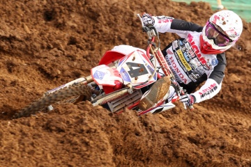 ホールショットは、ポイントリーダーの本田七海選手(#6)。そのままオープニングラップをトップでクリアした。トップグループは、この本田選手を先頭とした5台となり、竹内優菜選手(#4)は4番手。本田選手がじわじわとリードを拡大する一方で、竹内選手は前を走るライバルを攻略できずにいたが、レース前半が終わる4周目にペースを上げ、一気に2番手まで浮上した。