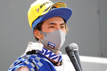 その後、トップの3台はそれぞれが単独走行に近い状態に。そして富田選手がレースを制し、渡辺選手が2位となった。能塚選手は3番目にゴールしたが、レース後の排気音量測定で規定値をオーバーしていたことから失格扱い。これにより、今季は6年ぶりにホンダのマシンを駆る小方誠選手(#4)が、ひとつ順位を繰り上げて3位となった。小方選手は、ヒート1とヒート2ともにスタートで出遅れ、ヒート1は6位。ヒート2では一時10番手を走行していたが、中盤に追い上げて3位となった。