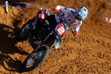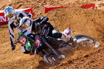 第3戦関東大会以来の2ヒート制が導入されたレディースクラスは、6周でチェッカーとなる10分+1周の超スプリントレース。その決勝ヒート1では、今年からホンダの4ストマシンに乗る久保まな選手(#3)がホールショットを奪った。ランキング2番手の本田七海選手(#2)は1周目3番手、前戦で全日本初表彰台登壇を果たした楠本菜月選手(#5)は出遅れて同7番手からのレースとなった。