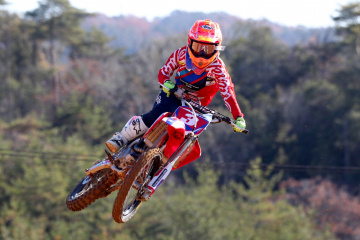 決勝ヒート2でも、再び久保選手がホールショット。これで久保選手は、シーズン後半の決勝4レース連続でホールショットを獲得することになった。オープニングラップは久保選手が制して、本田選手が2番手、楠本選手が3番手でクリア。2周目に本田選手と楠本選手が順位を上げ、久保選手から楠本選手までの3台がトップグループを形成した。