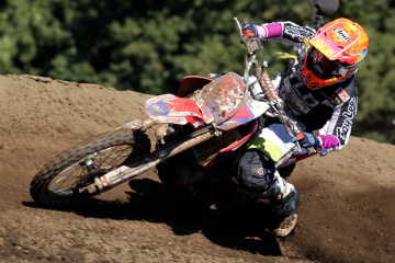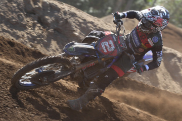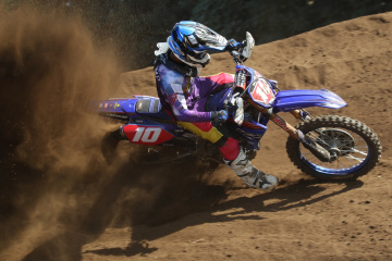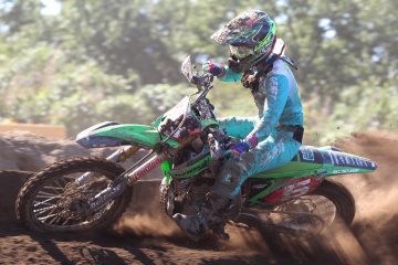 決勝ヒート2の最終ラップで転倒した岸選手は、残念ながらケガにより決勝ヒート3に出走できず。ホールショットの鴨田翔選手(#17)が1周目を2番手でクリアし、オープニングラップで順位を上げた西條選手が3番手、大倉選手が4番手からさらなる上位進出を狙った。2周目、鴨田選手と西條選手が僅差の2番手争いを展開。3周目には西條選手が一度は前に出たが、ここは鴨田選手がすぐに抜き返した。