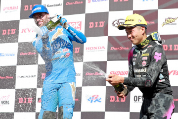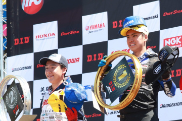 15分+1周の3ヒート制が導入された今シーズン開幕戦。その決勝ヒート1では、ウィルソン選手がいきなりホールショット。序盤の2周で早くも4~5秒のリードを築くと、その後は余裕の単独走行を続けて、IA1初レースで勝利を飾った。能塚選手は、1周目5番手からのレースとなり、6周目に3番手浮上。そのまま9周目の最終ラップまで走り切り、3位表彰台に登壇した。