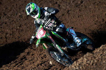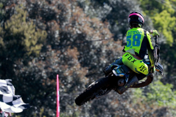 決勝ヒート2では、再びウィルソン選手がホールショット。レース序盤から、少しずつ着実にリードを拡大していった。能塚選手は大きく出遅れ、小方選手をパスした2周目の段階でもまだ8番手。それでも、3周目には6番手、5周目には前を走っていたライバルの転倒後退で4番手に順位を上げた。この段階で、トップのウィルソン選手は6秒ほどのアドバンテージがあったが、5周目に1分55秒142というベストラップタイムをマーク。これでリードが約9秒まで拡大した。