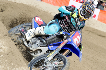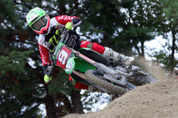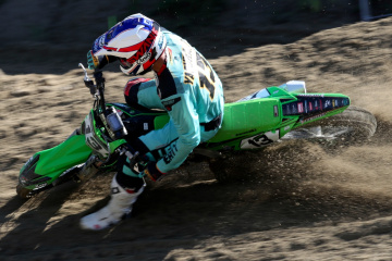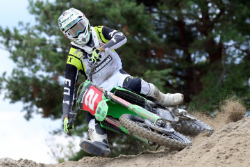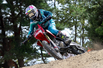 2023 年の全日本モトクロス選手権シリーズ第6戦近畿大会が、三重との県境に近い奈良県の名阪スポーツランドで開催された。サンド質の路面を特徴とするコースは、山の斜面にレイアウトされており、コース幅が狭くテクニカルな設計。基本的なレイアウトは昨年同様で、細部のセッティングのみ変更された。金曜日の降雨により、土曜日は路面が水分を多く含んだ柔らかい状態でスタート。しかしすぐにコンディションは回復し、日曜日の走行に向けて入念な散水作業が施された。決勝日の午前中は曇りで、昼前後は雨。しかし午後に雨が止むと青空が顔をのぞかせ、結果的には最初から最後までベストな路面コンディションが維持された。全日本最高峰となるIA1クラスのダンロップ勢では、ホンダを駆る小方誠選手(#5)やヤマハファクトリーチームの町田旺郷選手(#16)が、ケガにより今大会を欠場した。
