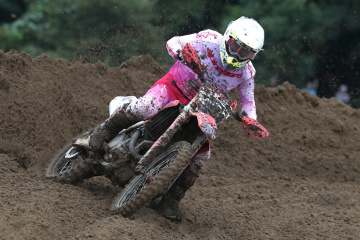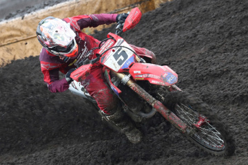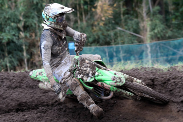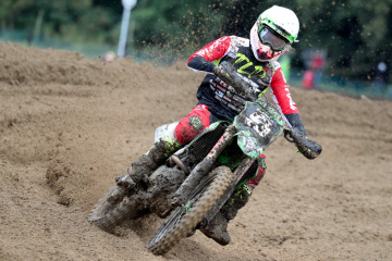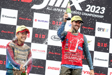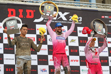 2023 年の全日本モトクロス選手権は、全9戦のスケジュール。その終盤戦最初の戦いとなる第7戦が、今季開幕戦の舞台にもなった熊本県のHSR九州で開催された。オンロードサーキットなども有するHSR九州に設けられたモトクロスコースは、広いコース幅とハイスピードかつダイナミックな構成を特徴としてきた。昨秋の全日本開催時に大幅な仕様変更が施され、テクニカルなセクションが増加。今大会もその基本レイアウトを踏襲しながら、ジャンプやリズムセクションなどが変更された。本来の土壌は阿蘇の噴火に由来する黒土だが、近年は山砂を使いながらメンテナンスが施されている。大会当日は朝から強め雨が降り、路面はマディコンディションとなった。今大会は日曜日のみのワンデースケジュールで、IA1とIA2のみ実施。各クラスとも、公式練習を兼ねた20分間のタイムアタック予選、20分+1周の決勝ヒート1とヒート2、そして各クラスの2ヒート総合成績15位以内に入った選手のみが参加できる15分+1周のIAオープン決勝1レースが設定された。