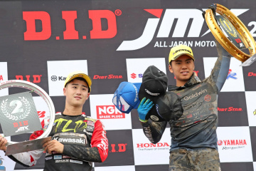 決勝ヒート2では、前戦の事前練習で鎖骨を折るケガを負い、今回が復帰戦となったホンダを駆る小方誠選手(#5)がホールショット。ウィルソン選手はスタート直後に2番手へ浮上すると、この小方選手に迫った。オープニングラップは、小方選手がポジションを死守。しかし2周目に、ウィルソン選手が先行した。翌周、能塚選手は3番手の選手に肉迫して、4周目に逆転。4秒ほど先行していた小方選手を追った。レース中盤、逃げ切りを図るウィルソン選手に対して小方選手が互角のラップタイムを刻み、両者のギャップは2秒前後のまま推移。しかしレース終盤に小方選手が順位キープの走りに切り替えたことで、その間隔は拡大した。また能塚選手は、小方選手に離されて単独走行となった。そしてレースは10周で終了。ウィルソン選手が優勝、小方選手が2位、能塚選手が3位に入賞して、ダンロップ勢が表彰台を独占した。このレースの結果、ウィルソン選手のシリーズタイトル獲得が決まった。
