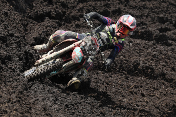 30分+1周の2ヒート制で実施された開幕戦の決勝ヒート1で、ホールショットを奪ったのは横山選手。2周目には、ウィルソン選手が1台を抜いて2番手に順位を上げると、横山選手の攻略にも成功してトップに立った。3周目、大倉選手は転倒を喫して6番手までポジションダウン。これで5番手まで順位を上げたのは、スタートで出遅れていたイタリア出身のジュゼッペ・トロペペ選手(#42)だった。トロペペ選手は、昨年度ランキング3位となったビクトル・アロンソ選手に代わりチームに加入した、世界選手権での経験もあるライダー。昨年のアロンソ選手と同じく、ガスガスのマシンを駆る。