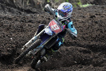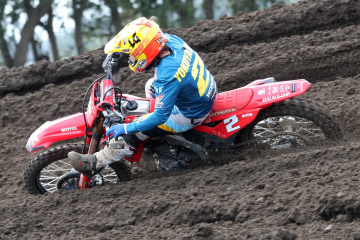 この開幕戦は、ワンデースケジュールかつ入場無料で実施。ホンダの熊本製作所に隣接するコースは、フラットな土地に設けられ、ハイスピード区間や多彩なジャンプも有する。本来は阿蘇の火山灰に由来する黒土の土壌だが、近年はメンテナンスの際に山砂が一部区間に敷かれることも多い。前夜のまとまった降雨により、朝の路面はマディコンディション。しかし朝8時頃に雨が止むと、天候は一気に回復し、気温は低めながら強風が吹いたことも後押しとなり、路面はどんどん乾いていった。ただし、深いギャップやワダチ、岩盤が露出した区間も多く、難しいコンディションとなった。