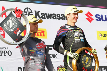 レース中盤、トップのウィルソン選手は快調にリードを拡大していたが、6周目にトロペペ選手がついに2番手まで浮上。この段階で7秒ほどあったギャップを削り、8周目にはほぼ接近戦となった。翌周、トロペペ選手は逆転に成功。しかしその直後、マシンが白煙が噴き始め、翌周の1コーナーでトロペペ選手はマシンを止めた。これでトップに返り咲いたウィルソン選手は独走状態。そのまま15周を走破し、開幕戦で初勝利を挙げた。レース後半、横山選手は2番手の選手を僅差で追い続けたが、ラスト2周でミスを連発して3位。9周目に大倉選手が再び転倒したことで順位を上げた大城選手が4位、大倉選手が5位、今年から最高峰クラスにステップアップしたカワサキを駆る西條悠人選手(#37)が6位だった。