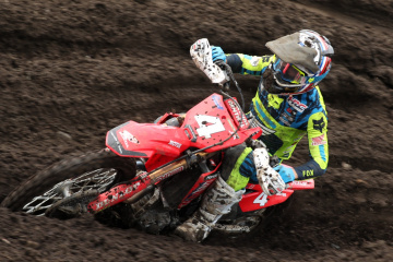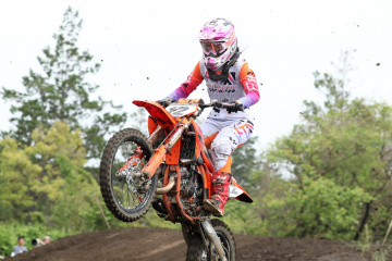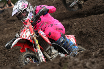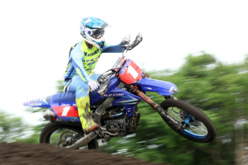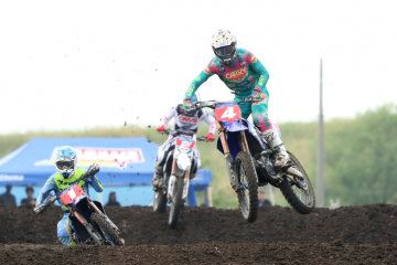 河川敷のフラットな土地に設けられたオフロードヴィレッジのコースは、昨秋の全日本開催前にフルリニューアルされており、今大会はその基本レイアウトを受け継ぎながらセッティング。ジャンプやリズムセクションが多く、コーナーはタイトターンを中心とした、スーパークロスをアウトドア化したような短めのコースだ。土曜日は朝から夕方まで降雨となり、コースはマディコンディションに。日曜日は曇りで気温も26℃まで上昇したが、路面状況の回復は緩やかで、徐々にドライ化して硬くなっていった。