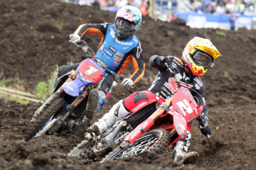 決勝ヒート2では、スタート直後に4番手を走っていたウィルソン選手が転倒して、20番手付近まで後退。さらにウィルソン選手は、追い上げていた2周目にも転倒を喫し、21番手まで後退する厳しい展開となった。レースは、ヒート1はスタートの出遅れが響いて8位に終わったカワサキファクトリーチームの能塚智寛選手(#5)がホールショットを奪い、これを横山選手がパスして1周目にトップ浮上。横山選手、能塚選手、ヒート1は1周目に転倒して9位だったホンダサポートの大倉由揮選手(#4)が、序盤にトップグループを形成した。