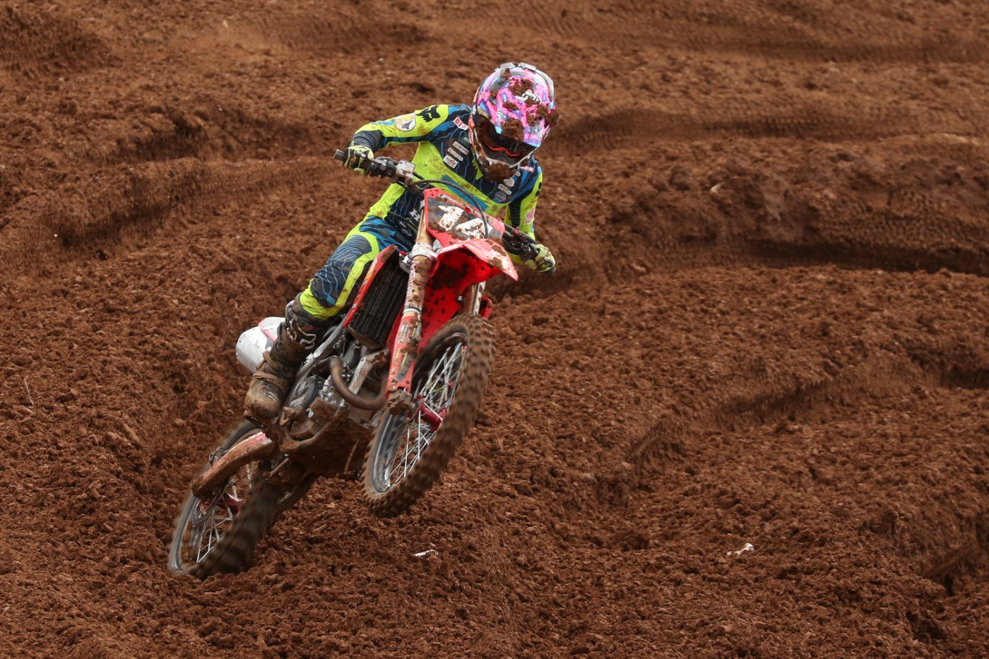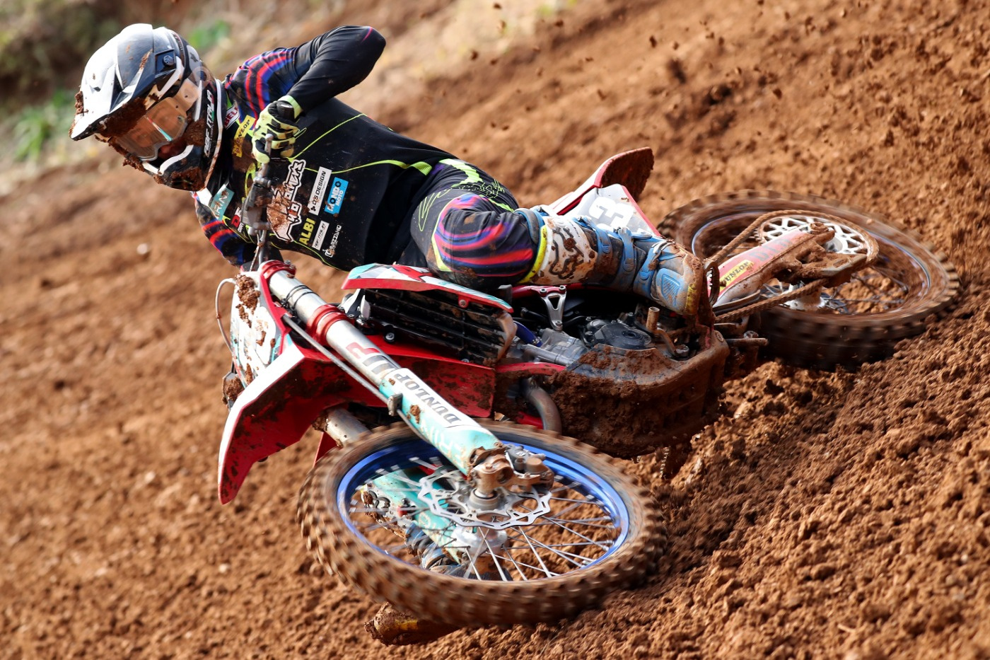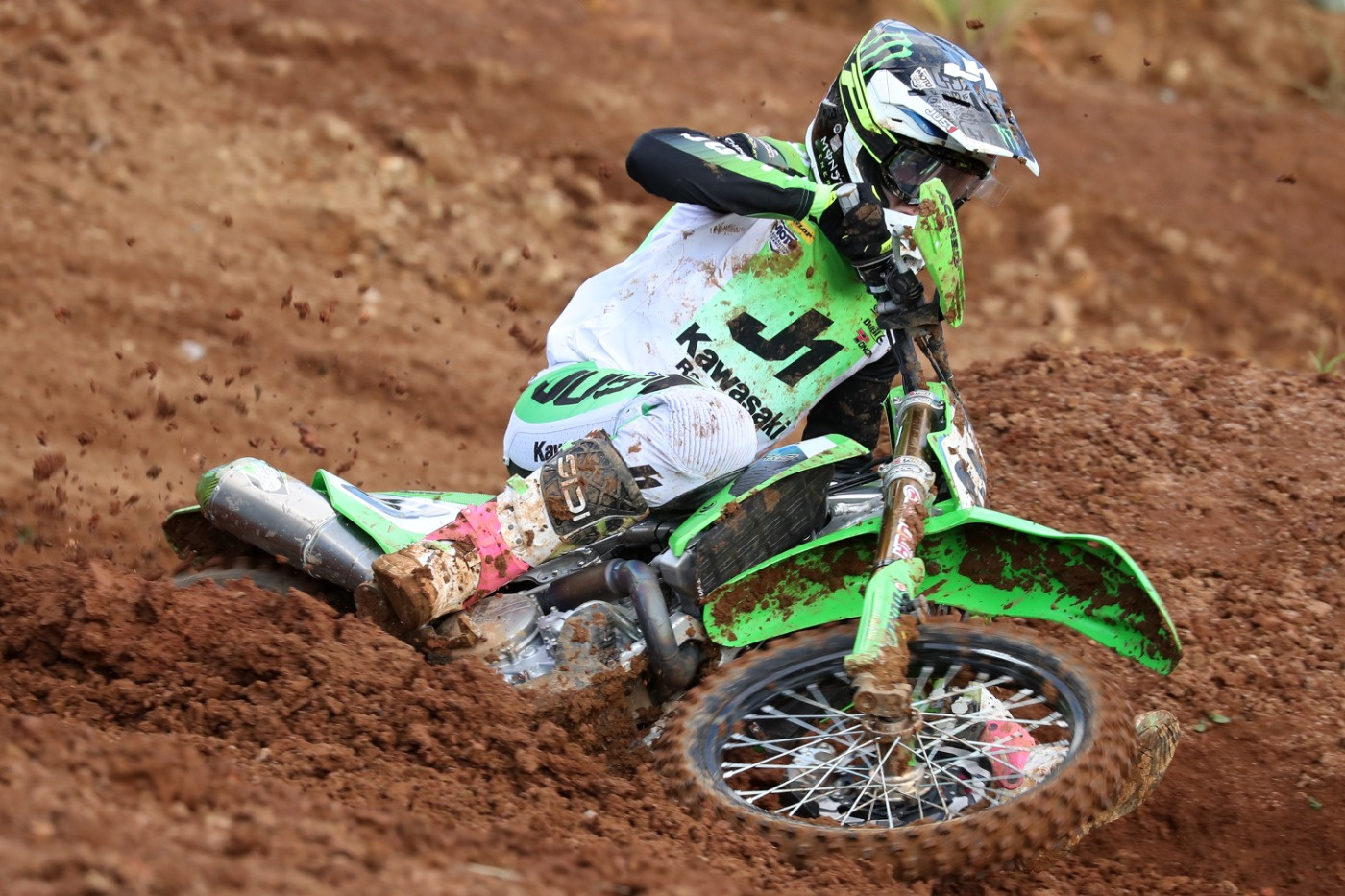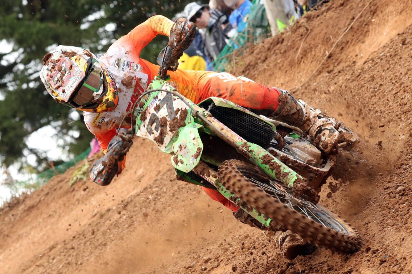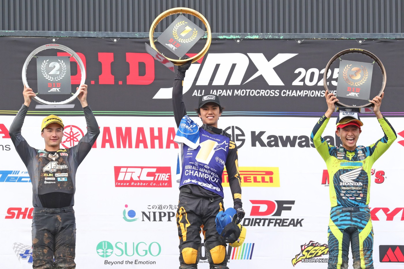 2025年の全日本モトクロス選手権シリーズは最終戦を迎え、第7戦「第63回MFJ-GPモトクロス大会」が宮城県のスポーツランドSUGOで開催。全日本格式となる4クラスは、いずれもこの最終戦までチャンピオン決定が持ち越しとなっていた。土曜日の朝までに降った雨が止むと、大幅に天候が回復。土曜日は晴れ時々曇りで陽射しもそれなりにあり、なおかつ強風が吹き荒れたことで、粘土質の路面は急速に改善され、同じく晴れ時々曇りだった日曜日もドライコンディションとなった。ただし、粘土質の土壌が適度な水分を含んだことで、随所に深くて固いワダチが発生。さらに一部区間は日曜日でもぬかるんでおり、攻略が難しいコンディションとなった。