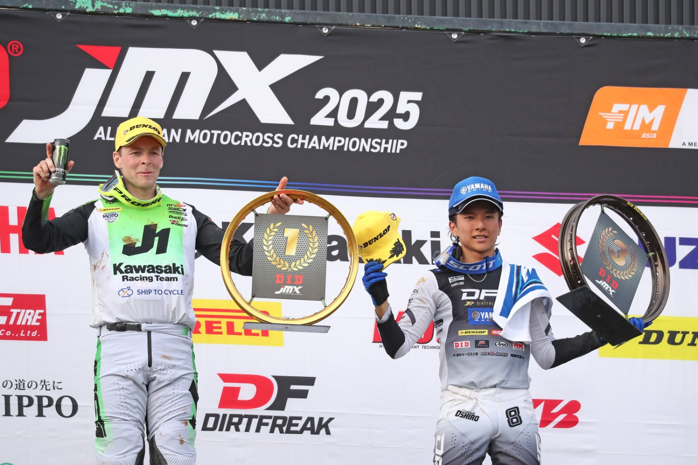 最高峰となるIA1クラスは、ダンロップ勢によるチャンピオン争い。ヤマハファクトリーチームのジェイ・ウィルソン選手(#1)が、ホンダサポートの大倉由揮選手(#4)を36点離して今大会を迎えた。なおこの最終戦には、世界選手権最高峰のMXGPクラスで2025年のシリーズチャンピオンを獲得した、カワサキファクトリーチームのロマン・フェーブル選手(#3)がスポット参戦。フェーブル選手は、ダンロップに25年ぶりのMXGPタイトルをもたらした。一方、全日本勢の有力選手では、ホンダの横山遥希選手(#2)とカワサキファクトリーチームの能塚智寛選手(#5)が、ケガにより今大会を欠場した。