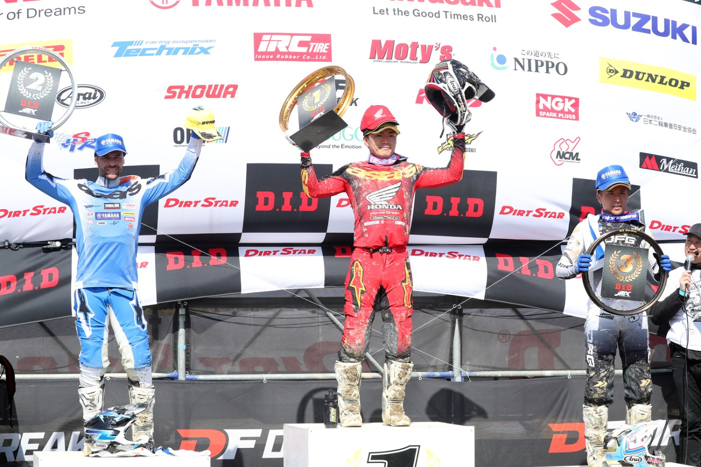 決勝ヒート2は、大倉選手がトップ、ウィルソン選手が2番手、大城選手が3番手、タイのライダーでホンダのサポートにより今季は全日本にフル参戦するジラッジ・ワナラック選手(#23)が3番手で1周目をクリアした。2周目以降、大倉選手とウィルソン選手と大城選手は、後続を離しながらトップグループを形成。この中で、まずはウィルソン選手が先頭に立ち、大城選手が続いた。レース中盤、トップグループは1~2秒間隔で膠着状態となったが、終盤になって激戦。大城選手と大倉選手が何度も順位を入れ替えながら、ウィルソン選手に迫った。これに競り勝った大倉選手が優勝、ウィルソン選手が2位、大城選手が3位となった。ワナラック選手は転倒で後退し、スポット参戦したヤマハ開発ライダーの富田俊樹選手(#317)が4位となった。