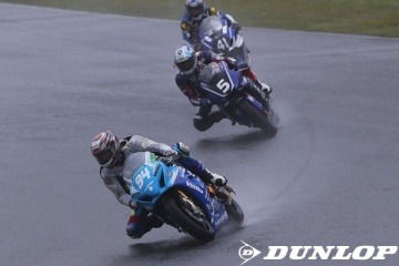 日曜日も、朝からウェット・コンディションとなった。予選では、浦本修充選手(SUZUKI)が5位、加賀山就臣選手(SUZUKI)7位、中冨伸一選手(YAMAHA)9位、秋吉耕佑選手(HONDA)10位、渥美心選手(HONDA)は23位となった。