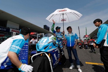 21日(土)、晴天の中で行われた予選で、Team KAGAYAMAの加賀山就臣選手(SUZUKI)は10番手。また、HiTMAN RCKOSHIEN YAMAHAの中冨伸一選手(YAMAHA)はセッティングに苦しみ20番。この順位でレース1のグリッドにつくことになった。