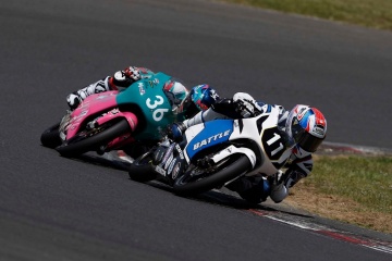 決勝レースが始まると、長谷川聖選手(HONDA)がトップに立ち、高杉選手、福嶋佑斗選手(HONDA)などが続く。鈴木選手は好ダッシュを決めると、すぐに挽回。1周目を終えると、鈴木選手は高杉選手の後方3番手につける。