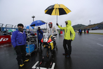 予選では、小室旭選手(KTM)が2戦連続のポール・ポジションを獲得。村瀬健琉選手(HONDA)が2位につける。古里太陽選手(HONDA)は5番手2列目となる。