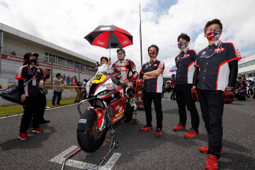 また、國川浩道選手(HONDA)は8月末の第6戦ST1000クラスへの参戦へ向けて、今回JSB1000にスポット参戦。ST1000クラス用のマシンで走り21位、武田雄一選手(YAMAHA)22位につけた。レース1はこの順位でスターティング・グリッドに並ぶ。