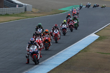 スタートよく飛び出したのは國井選手。後ろから高橋裕紀選手、予選7位スタートの國峰琢磨選手(HONDA)、高橋巧選手(HONDA)などが続く。