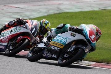 再スタートすると、尾野選手が再び好ダッシュ。後ろから木内選手、大和選手、若松怜選手(HONDA)が続き、この3台がトップ・グループとなる。終盤に入ると、尾野選手と大和選手の戦いに絞られる。
