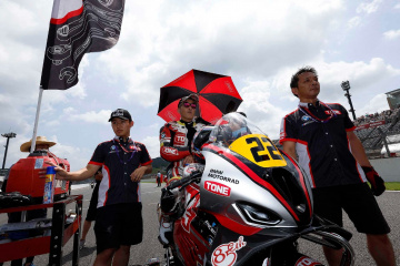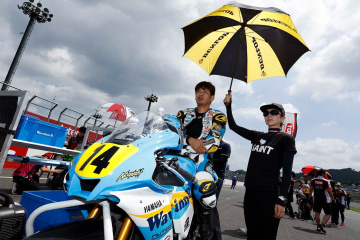ダンロップのレース用タイヤの開発をしながらレース参戦している中冨伸一選手(YAMAHA)は17位。星野知也選手(BMW)は20位につけた。