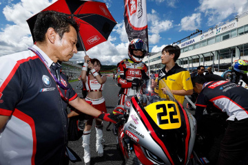レース2は、事前テストやレース・ウイークで経験したことのない暑いコンディションとなり、どう攻めていけばいいのか分からない状況でした。渡辺選手に離されないようについていったのですが、荒川選手に抜かれてしまいました。渡辺選手の転倒で、荒川選手とのトップ争いになりましたが、前に出ることができませんでした。悔しい結果ですが、条件がそろわない中でも表彰台に上る走りができたことは、シリーズ戦を考えれば、よかったと思います」