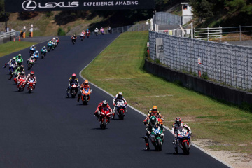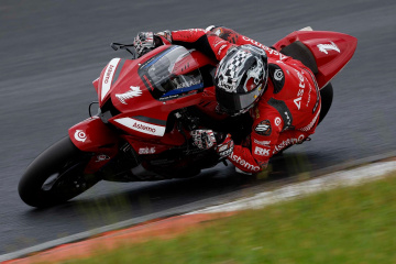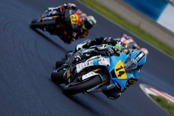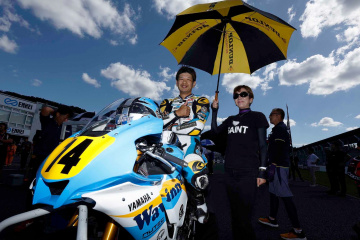 第7戦の舞台は、岡山国際サーキット。ドライ・コンディションで行われた予選では、前戦のウィナー、荒川晃大選手(HONDA)がコース・レコードを更新して初のポール・ポジションを獲得した。「目標としていたタイムを出せてうれしい。明日は混戦になると思うが、しっかり走りたい」と荒川選手。続いて、ケガした國井勇輝選手の代役として参戦した長島哲太選手(HONDA)が2位、渡辺一馬選手(HONDA)が3位に続く。首位の國峰啄磨選手(HONDA)4位、1点差でランキング2位の榎戸育寛選手(HONDA)5位に続いた。