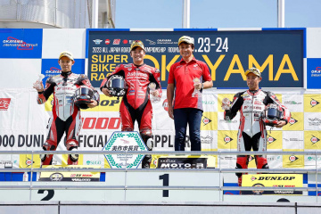 最終ラップへ、榎戸選手、國峰選手、渡辺選手のオーダーで突入。國峰選手はアタックをかけたが、榎戸選手と接触してしまい2台は転倒してしまう。これで、渡辺選手が先頭に立ち、今季初優勝を決める。続いて、高橋巧選手(HONDA)2位、高橋裕紀選手3位と、ベテラン選手が表彰台に上がることとなった。