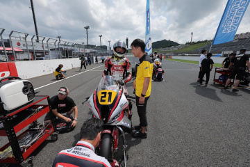 日曜日は午前中から雨予報とされたが、雲が多いものの、雨が降りそうな気配はない。ウォームアップ走行が始まる8時半のコンディションは、気温28度、路面温度は35度(いずれも手元計測)と、前日までの暑さではない。20分間のこのセッションで長島選手は順調にタイムを上げ、1'49.293で5番手に付けた。