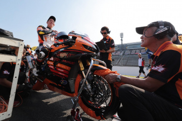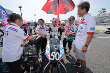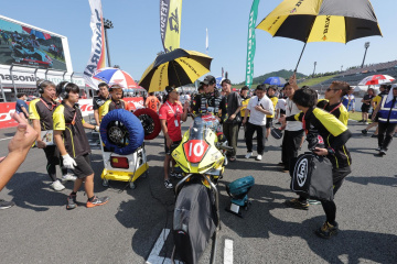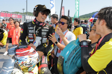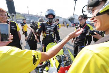 鈴鹿8耐前に岡山国際サーキットでテストしたタイヤが非常に感触が良く、それを鈴鹿サーキットに持ち込んで、海外チームなどにもテストしてもらいました。その延長線上にあるタイヤを今回も使わせてもらいましたが、とても感触として良いものがありました。具体的にはリアタイヤで、接地面積をこれまでとは異なるものとし、加速方向にプラスになるようトライしたものです。もちろん開発中なのでネガもありますが、ポジティブな部分が大きく、レース1、レース2ともにこのタイヤのおかげで良い位置を走ることができました。レース2はマシンのちょっとしたトラブルがあって転倒してしまい、連続ポイント獲得ができなかったのは悔しいですが、新型車両のシェイクダウンをしながらのレースウイークでこの結果だったので、今後のレースが楽しみになりました。