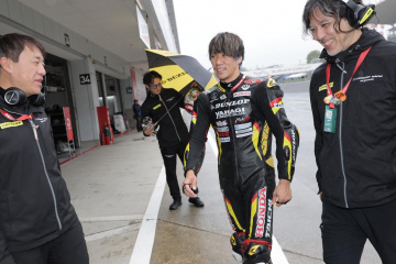 木曜日1本目の走行は9時35分から40分間行われた。前夜までの雨が路面にわずかに残るコンディションで、気温18度、路面温度22度と肌寒さを感じる中での走行となった。 長島選手は計測1周目を2’15.754、2周目2’13.608、3周目2’12.041とマシンとコンディションを確認しながら走行。4周目に2’10.801とペースを上げ、このセッションは8番手で終えた。 2回目の走行は13時55分から30分間。気温は20度、路面温度は33度となり、路面は完全にドライだった。 長島選手は計測1周目が2’10.126、2周目2’08.874とペースを上げ、その後ピットインしてセットアップを行った。 このセッションのベストタイムは6周目に出した2’08.132で、全体で7番手を記録した。 この日は午前中のセッションが微妙な路面コンディションだったため、1本目は車体の確認を行い、2本目で現行の基準タイヤの確認と車体セットアップをさらに進めることとなった。
