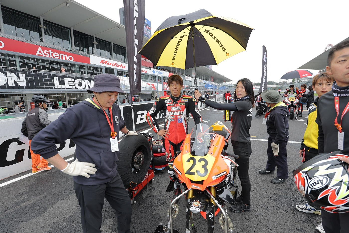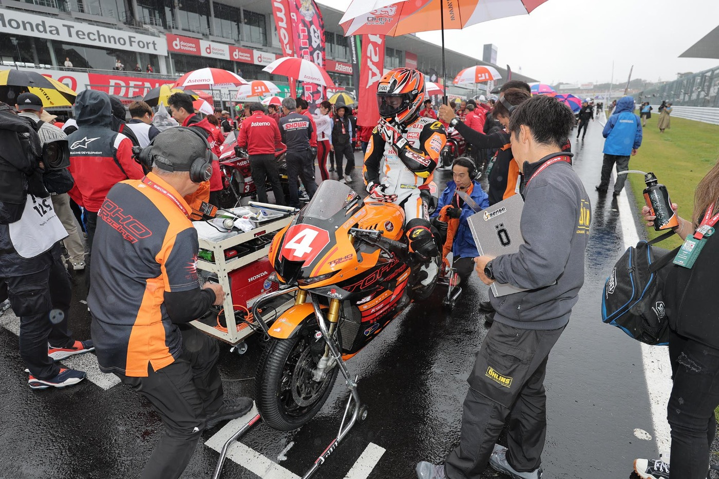 日曜日も朝から雨。8時55分からウォームアップ走行が行われた。気温19度、路面温度22度。 このセッションでチームとダンロップエンジニアは、レース1で発生した課題に対し、タイヤ側で調整できる項目を試して確認を行った。 長島選手は1周目を2’32.004、2周目2’26.260とペースを上げて状態を確認。4周目に2’22.963、5周目2’22.602と連続22秒台を記録し、6番手のタイムでセッションを終えた。 レース1で起きた課題の原因推測も進み、収穫の多い走行となった。