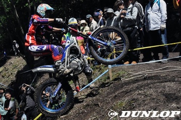 全日本トライアル選手権の今季第3戦九州大会が、5月14日(日)に大分県の玖珠トライアルヒルズで開催された。全日本最高峰の国際A級スーパークラスでは、昨シーズン終盤からニューマシンを駆る黒山健一選手(#2)が、開幕2連勝を達成してこの大会に挑んだ。一方、昨年度チャンピオンの小川友幸選手(#1)は開幕から2戦連続2位となっており、王座を守るためにもこれ以上は負けられない状態。また、黒山選手や小川友幸選手と同じくダンロップタイヤを履く野崎史高選手(#3)や小川毅士選手(#4)は、今季初優勝を目指して大会に臨んだ。