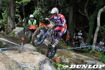全日本トライアル選手権シリーズの第4戦中国大会が、6月11日(日)に鳥取県のHIROスポーツパークで開催された。最高峰の国際A級スーパークラスでダンロップタイヤD803GPを履く小川友幸選手(#1)は、前戦で今季初優勝。連勝によって流れをつかむべく、今大会に臨んだ。一方、同じくダンロップタイヤを使用するポイントリーダーの黒山健一選手(#2)は、シリーズランキングをさらに有利な状態とするべく、今季3勝目を狙った。さらに、ランキング3番手の野崎史高選手(#3)らが、ダンロップタイヤを履き今季初優勝に向けて大会に挑んだ。