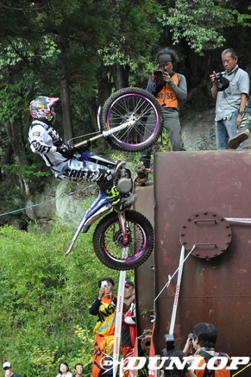 全日本トライアル選手権シリーズの第6戦中部大会が、10月8日(日)に愛知県のキョウセイドライバーランドで開催された。最高峰の国際A級スーパークラスでダンロップタイヤD803GPを履く小川友幸選手(#1)は、前戦で自身初の3連勝を達成し、同じくダンロップを愛用する黒山健一選手(#2)とのシリーズタイトル争いで7点のリードを確保。今大会は、小川選手がさらに連勝記録を伸ばしてV5に王手をかけるか、逆に黒山選手が勝って最終戦に望みをつなぐかに、大きな注目が集まった。