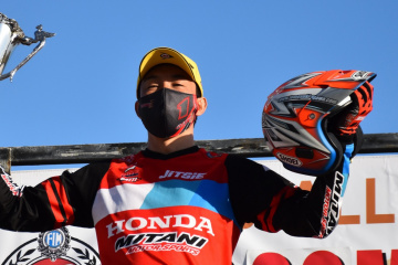 「今日は、最後の最後まで小川友幸選手と競り合っていましたが、最後は僕が逃げ切って、久しぶりに勝つことができました。勝因は、泥の第5セクションと、岩盤を上がる第7セクションの減点を抑えられたことだと思います。練習してきたように走れました。1ラップ目は、僕の不注意から第4セクションで転倒して腹を痛めましたが、それでも最後まで走れて良かったです。これまでやってきたことが、やっと結果につながりました。次の最終戦も勝ちたいと思っています」