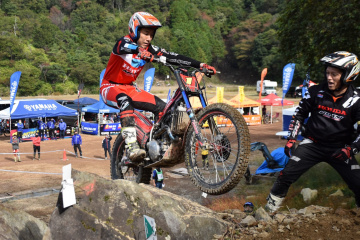 国際A級スーパークラスの競技は、4時間30分の持ち時間で10セクションを2ラップした後、上位10名だけがより難易度の高いひとつのスペシャルセクション(SS)で雌雄を決した。このところの雨で路面はぬかるみ、セクションはより難しくなっていたが、当日は晴れ時々曇りの好天に恵まれ、路面コンディションも次第に改善されていった。競技の1ラップ目は黒山選手がトップに立ち、小川選手や野崎選手をリード。連勝に向けた勢いも感じさせたが、黒山選手は2ラップ目に失速。代わって野崎選手がトップに立ったが、2ラップ目最後のセクションで失敗。これにより、野崎選手は合計減点21となり、小川選手が同18点でトップ、黒山選手が同19点の2番手でSSに挑んだ。