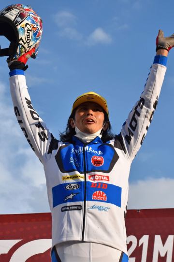「5ヶ月ぶりの全日本ということでかなり不安感もありましたが、開幕から3連勝という最高の結果になりました。とはいえ、すごく乗れていたというわけではないので、ライディングの微調整は必要な気がしています。2週間後の中部大会は2日間連続だし、地元中部での大会となるので、どちらの大会もしっかり勝ちを狙っていきたいと思います。タイトル争いでは優位になったと思いますが、まだまだ安心できる状況ではないので、しっかり気を引き締めて次戦までの2週間を大事に使っていきたいと思います」