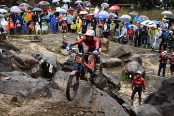 全日本トライアル選手権シリーズの今季第7戦となる近畿大会は、10月9日(日)に和歌山県の湯浅トライアルパークで開催された。曇りのち雨という生憎の天候となった今大会の国際A級スーパークラスには、18名が出走。4時間30分の持ち時間で10セクションを2ラップした後、上位10名がふたつのスペシャルセクション(SS)で勝負を決めた。