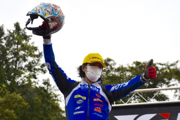 「やっと、勝てました。1ラップ目はあまり良い感じではなく、自分の走りができなかったのですが、2ラップ目になって自分が思い描いたとおりの走りが少しだけできたので、それが優勝につながったのかなと思います。最終的に試合が終わってみて結果が1位ということで、とても良かったですし、初めての優勝は本当にうれしいです。次は今季最終戦ですが、このままの勢いで頑張りたいと思いますので応援よろしくお願いします」